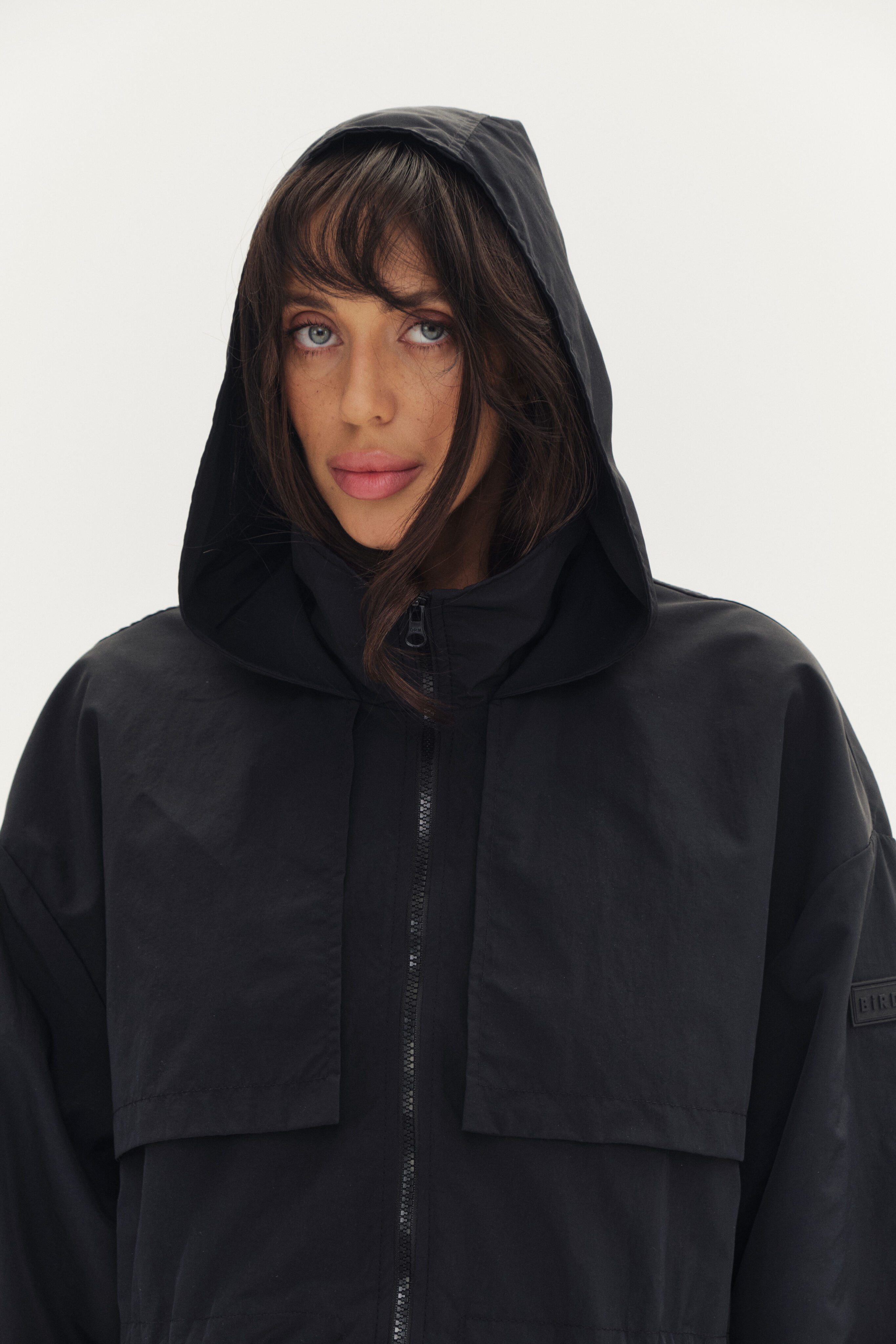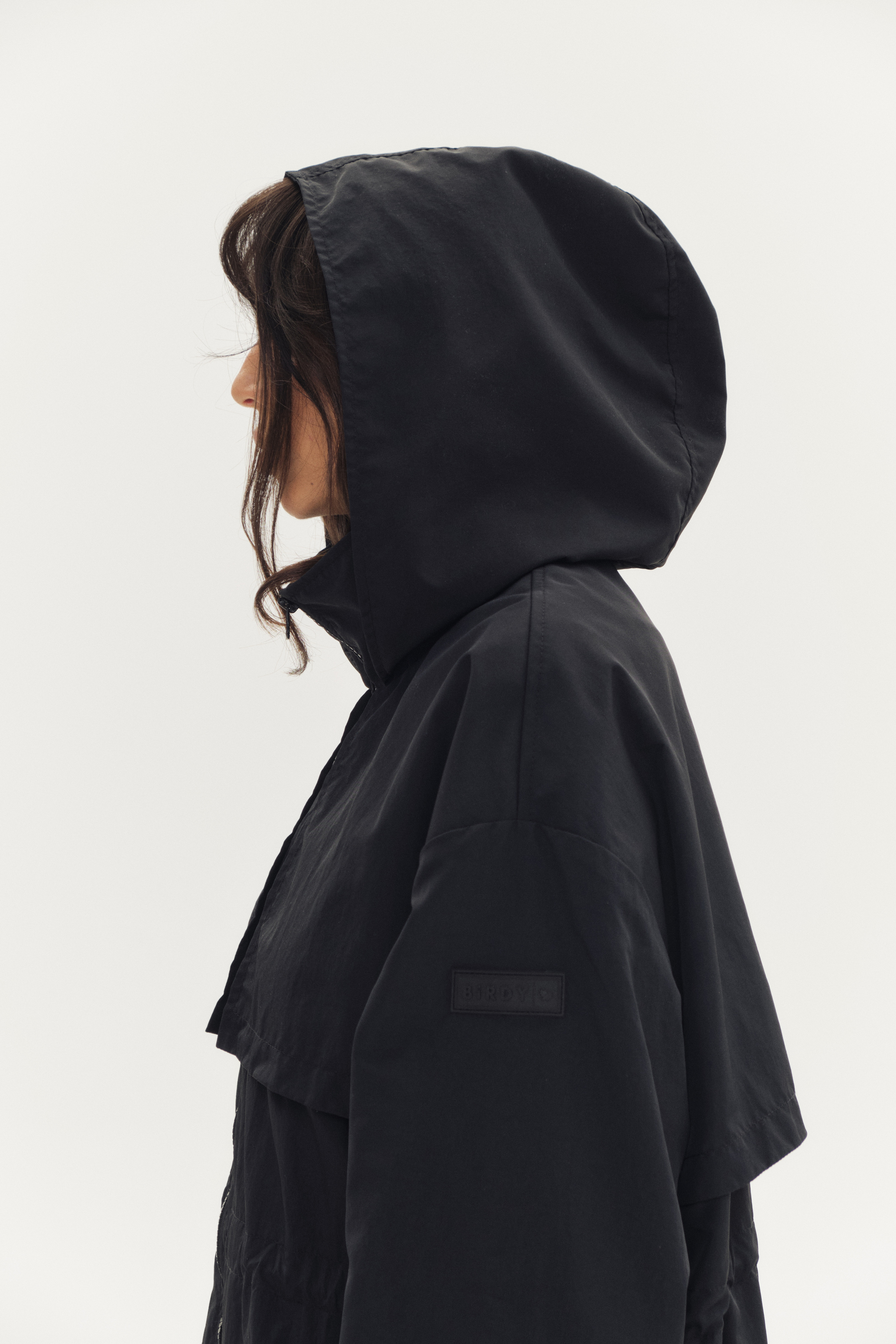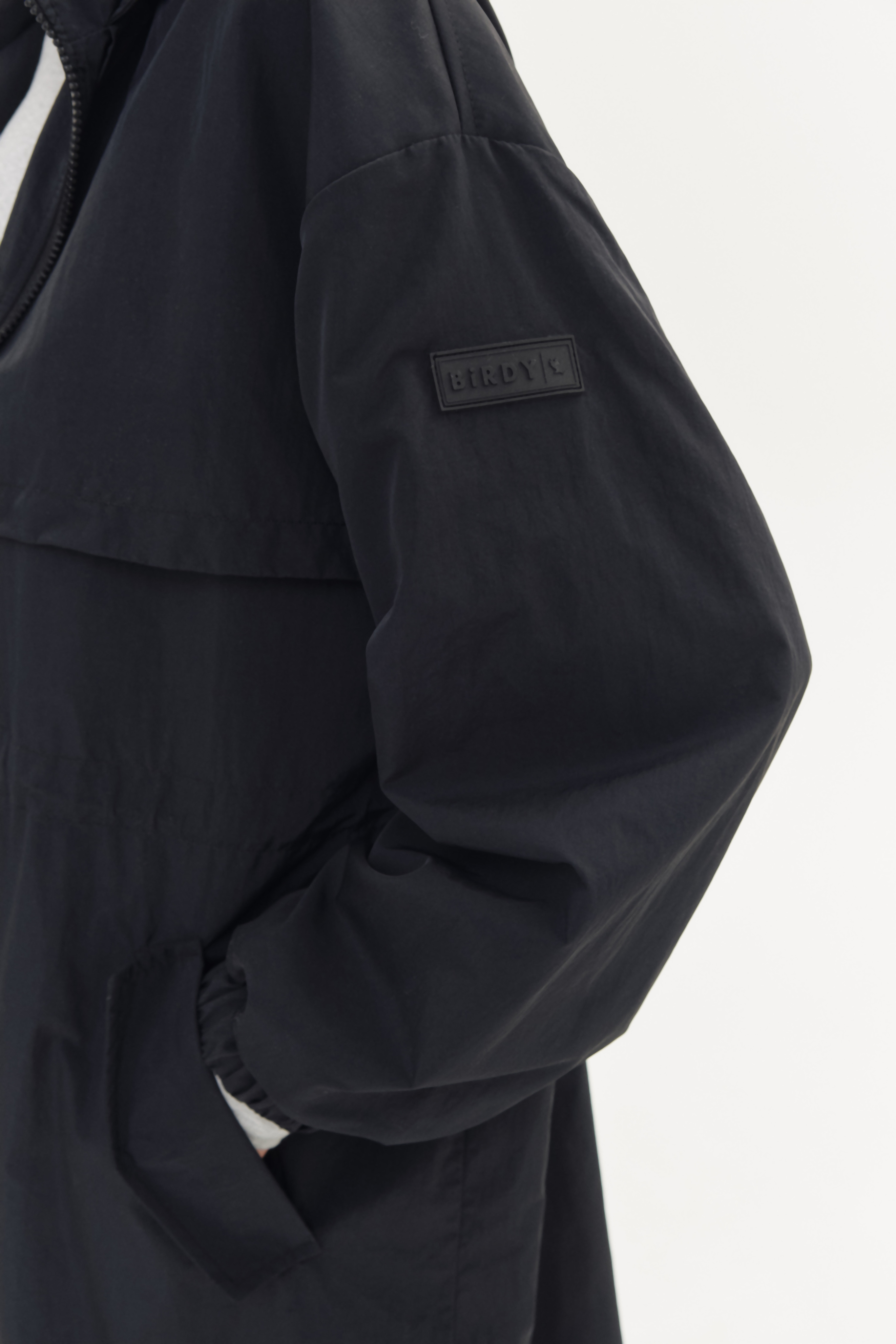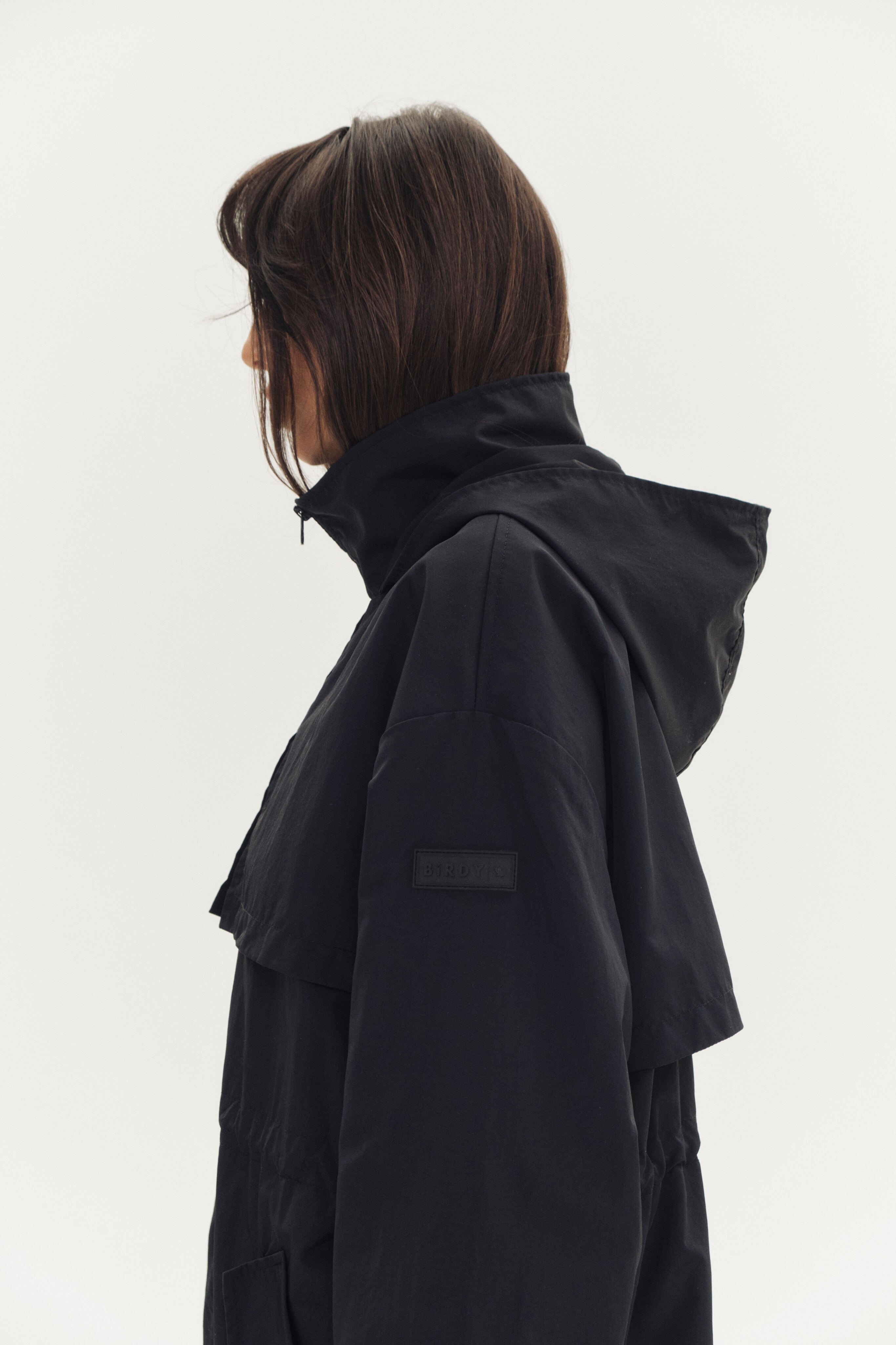 Легкий дождевик, дополнительная защита от дождя за счет ткани с водоотталкивающей пропиткой. Капюшон не отстегивается.