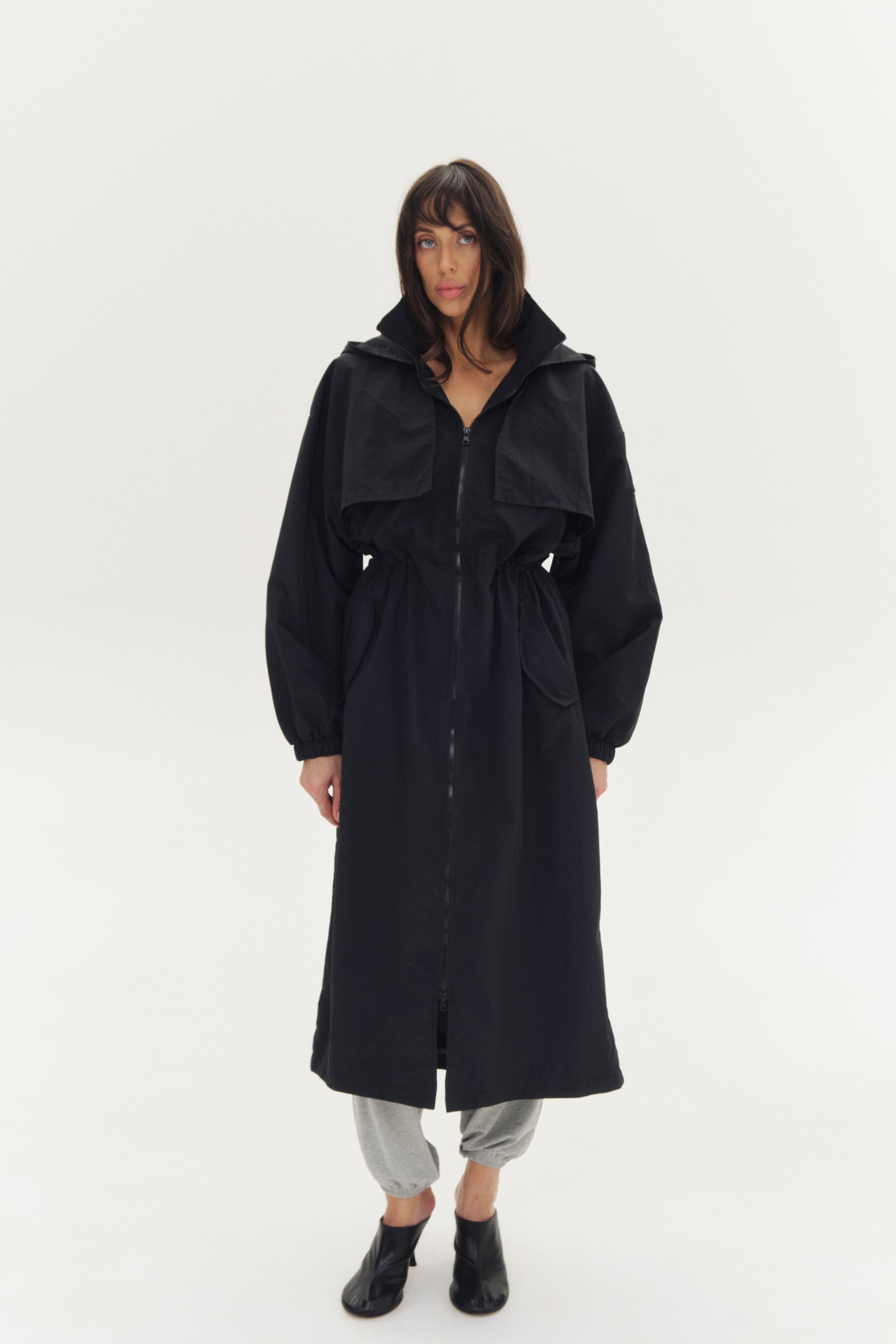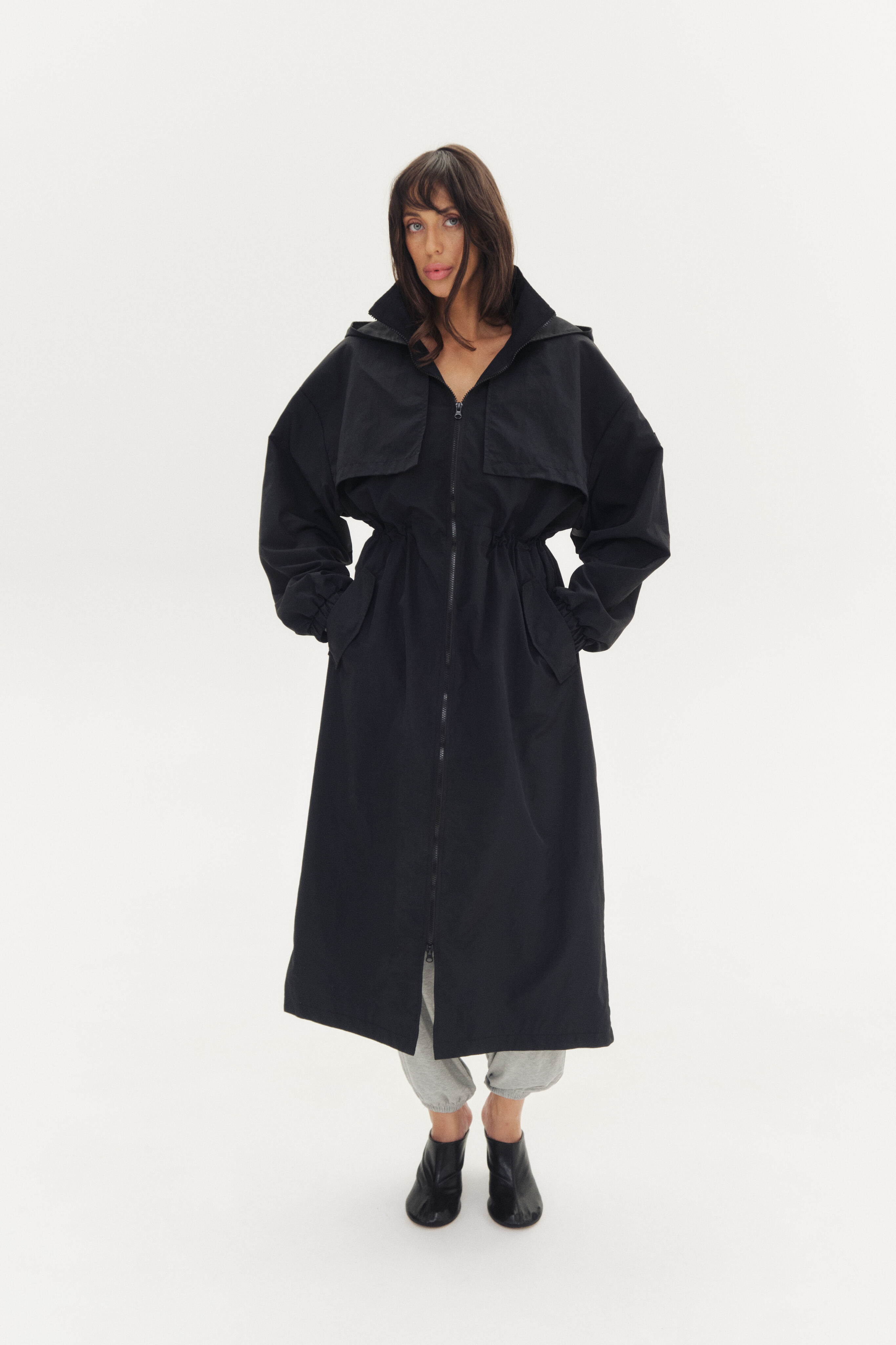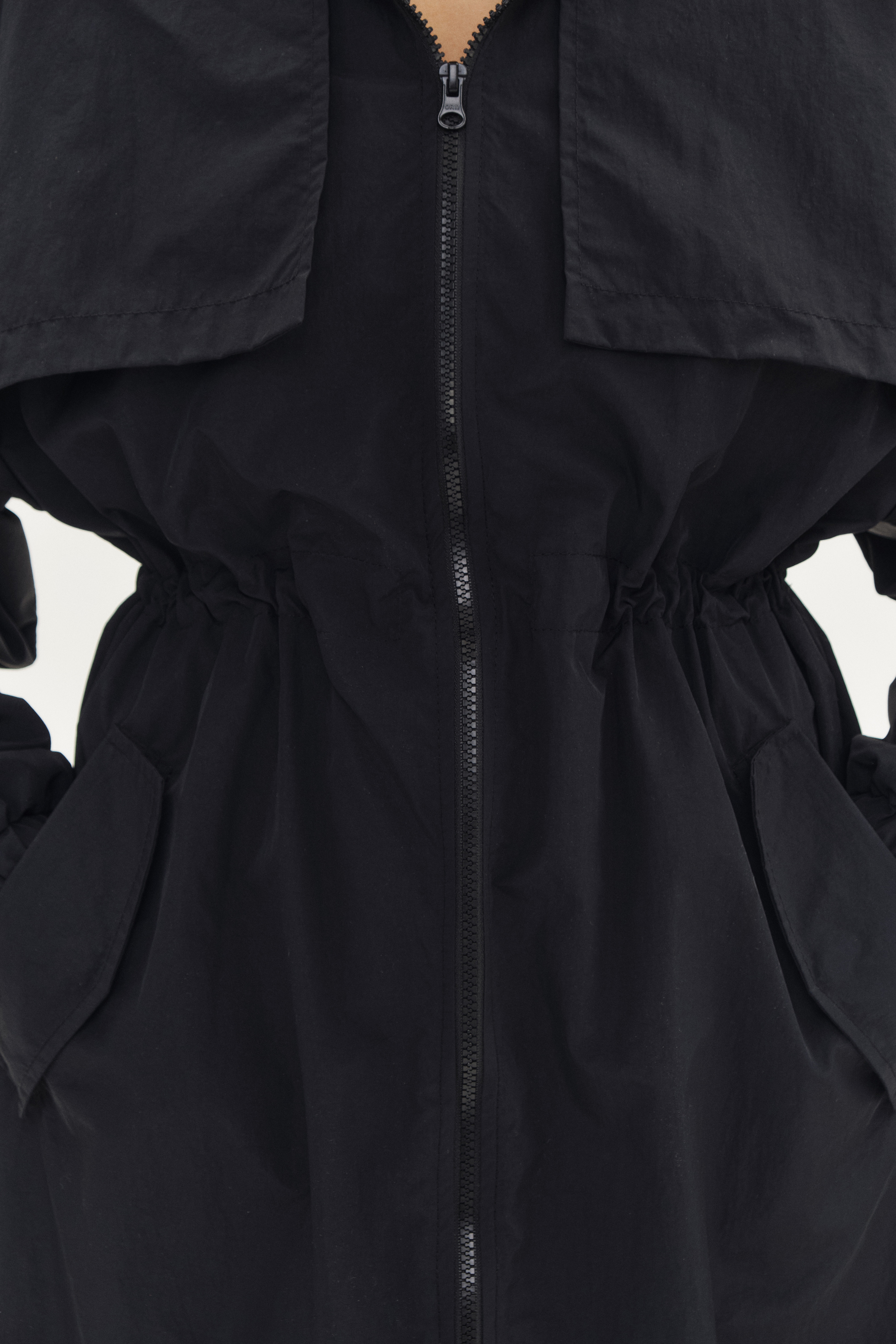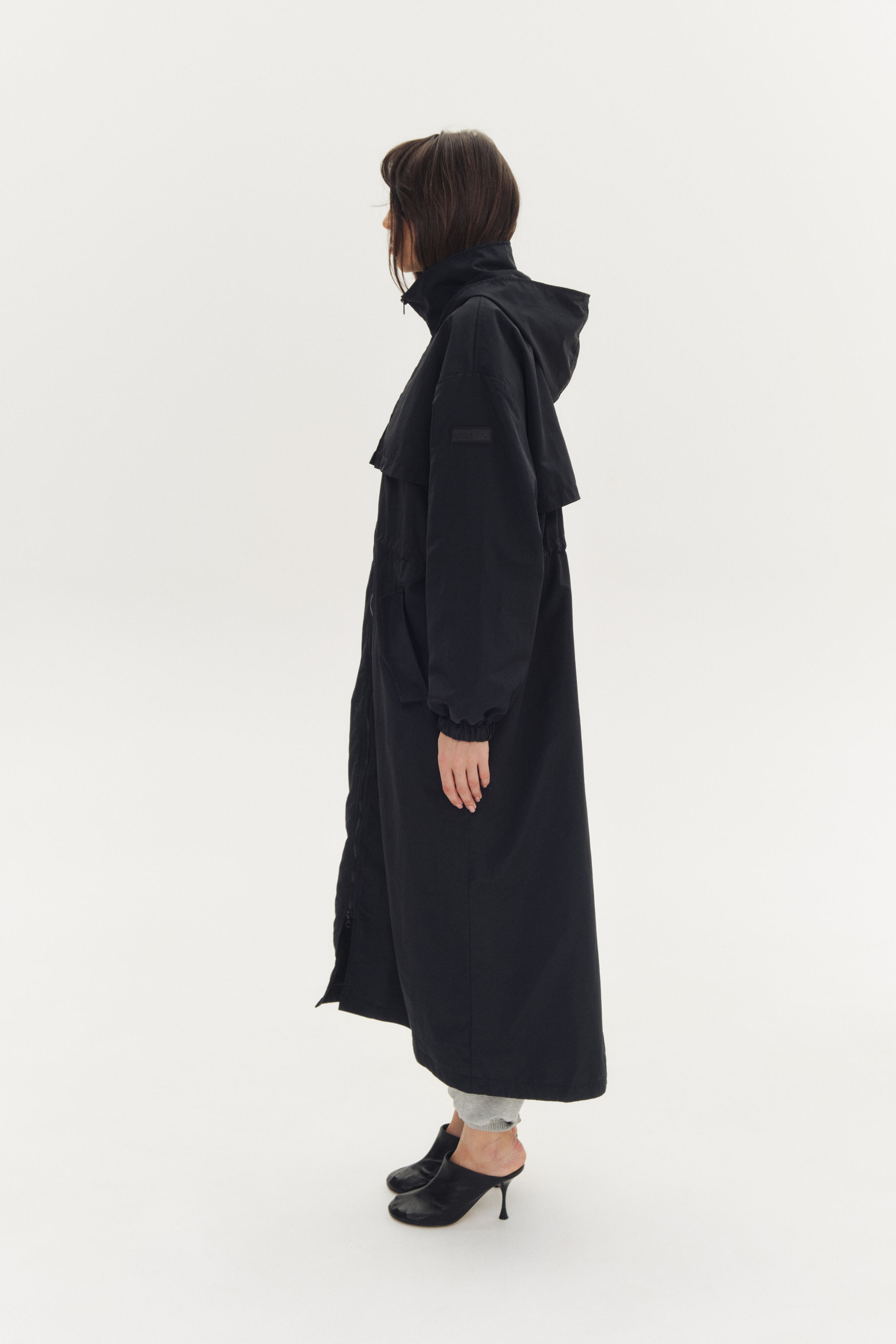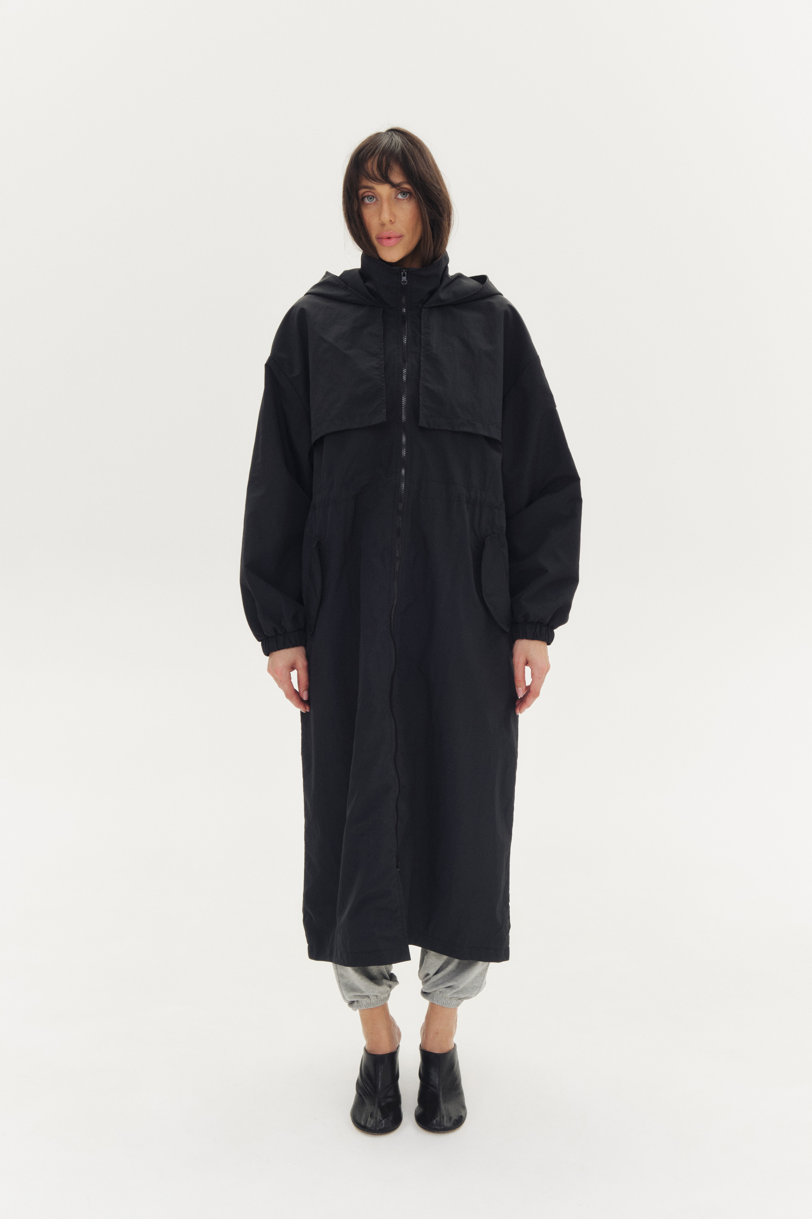 Легкий дождевик, дополнительная защита от дождя за счет ткани с водоотталкивающей пропиткой. Капюшон не отстегивается.