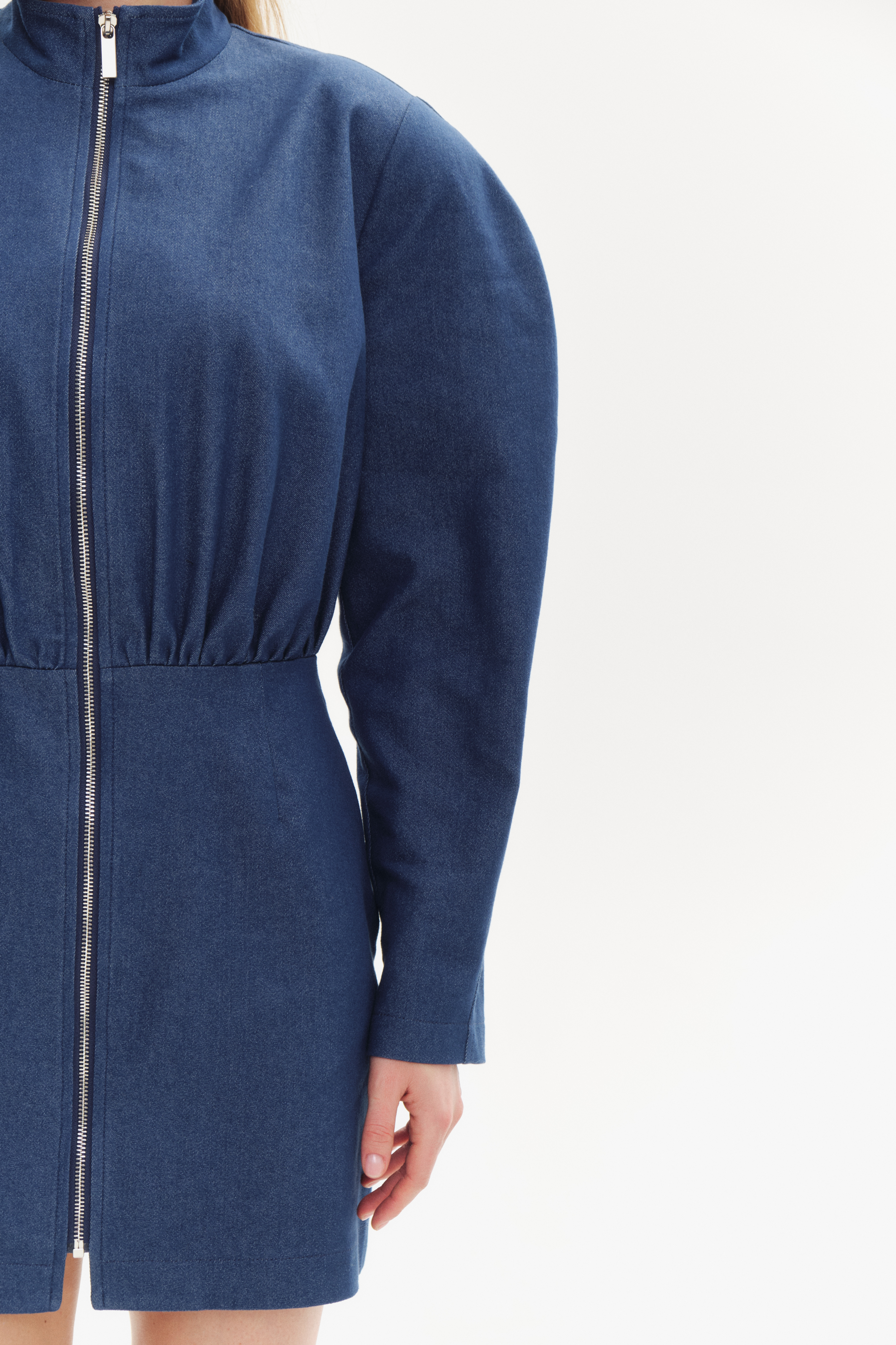 Плотная эластичная джинсовая ткань с содержанием хлопка. Имеет хорошую способность впитывать влагу, долговечность, прочность, отличную посадку по фигуре, а также комфорт в носке. Изделия из джинсовой ткани с добавлением полиэстера в составе требуют менее аккуратного ухода, они меньше мнутся и легче стираются.